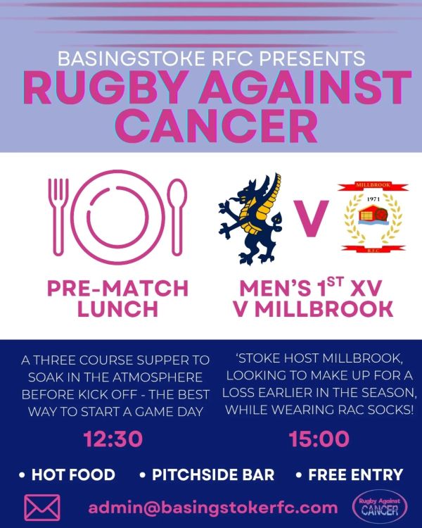 This weekend, our Men's section join in with Rugby Against Cancer's Sock Day, hosting a pre match lunch before the 1st XV play Millbrook, the Dragons head to Lymington and the Griffins host Trojans