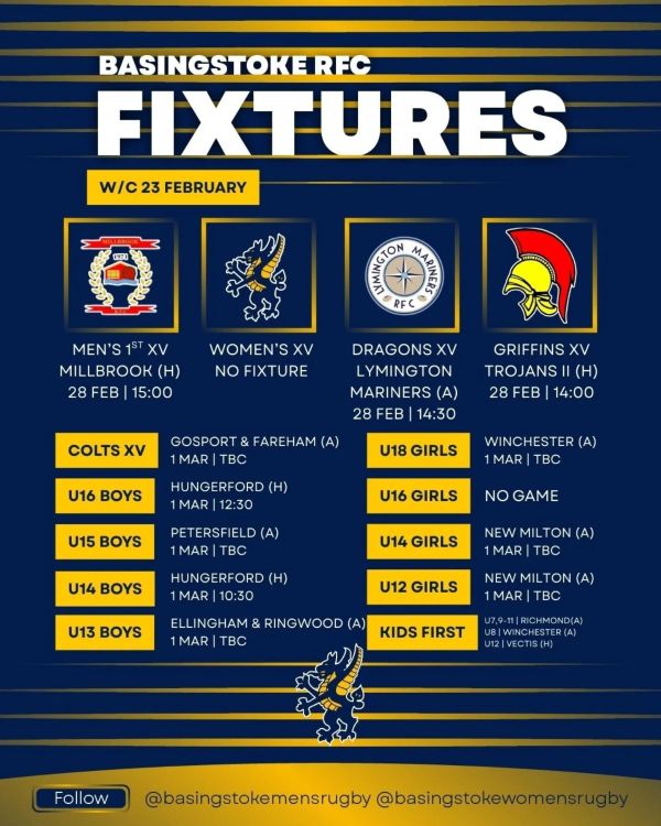 Our Men's section join in with Rugby Against Cancer's Sock Day, hosting a pre match lunch before the 1st XV play Millbrook, the Dragons head to Lymington and the Griffins host Trojans